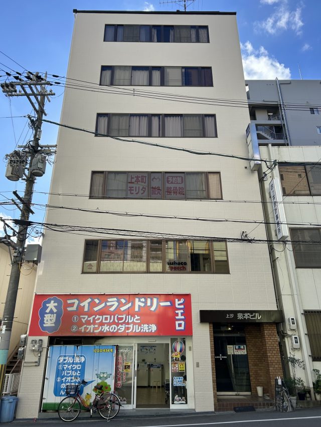 1階に「コインランドリー」があるビルの3階に「上本町モリタ鍼灸整骨院」があります。